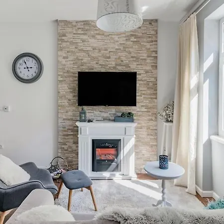 Equipped with a flat-screen TV with satellite channels, as well as a fireplace, a balcony and a seating area are at guests' disposal. Further, the apartment offers a parquet floor and is appointed with a sofa and a writing table. A bathroom comes with a separate toilet and a shower, along with towels and slippers.